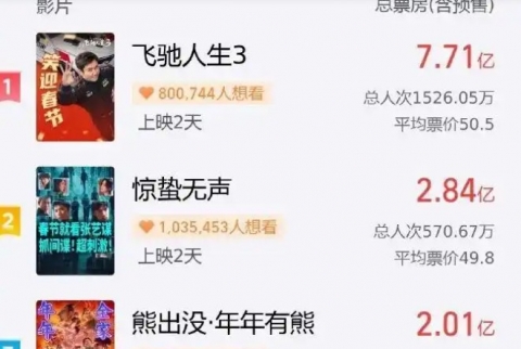 《飞驰人生3》持续领跑,位列第一