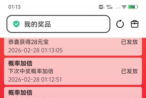 今天去抽奖了,中了18元宝